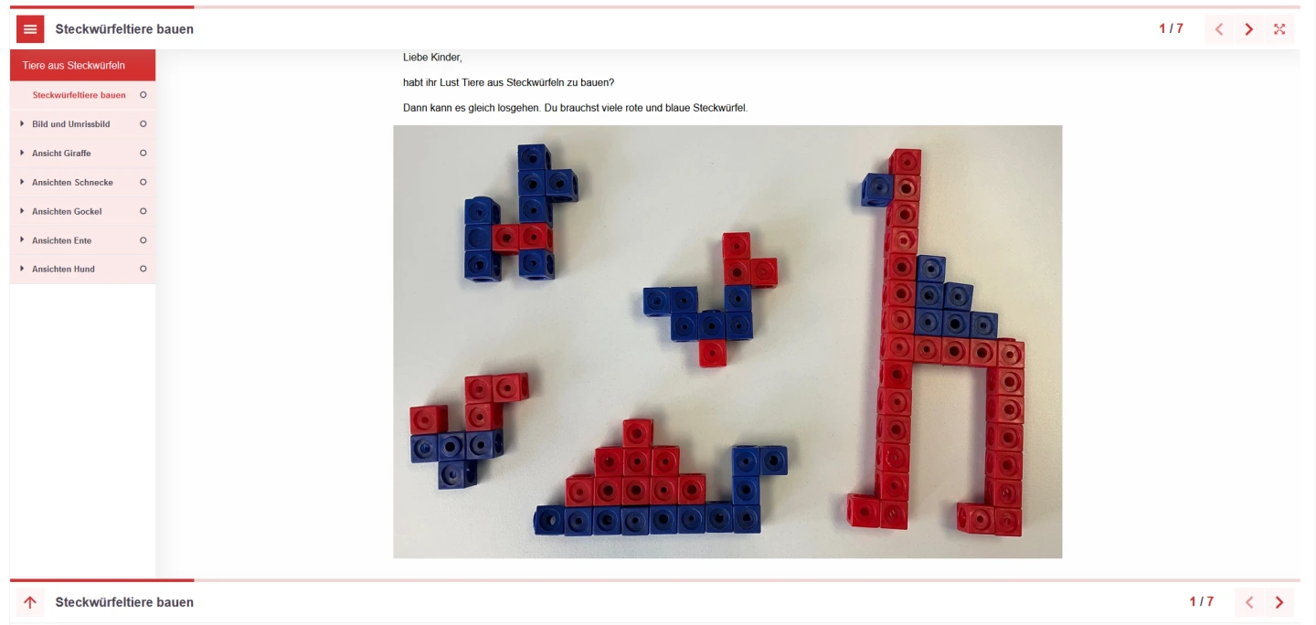 Vorstellung der Übung „Digitales Buch: Tiere aus Steckwürfeln“: