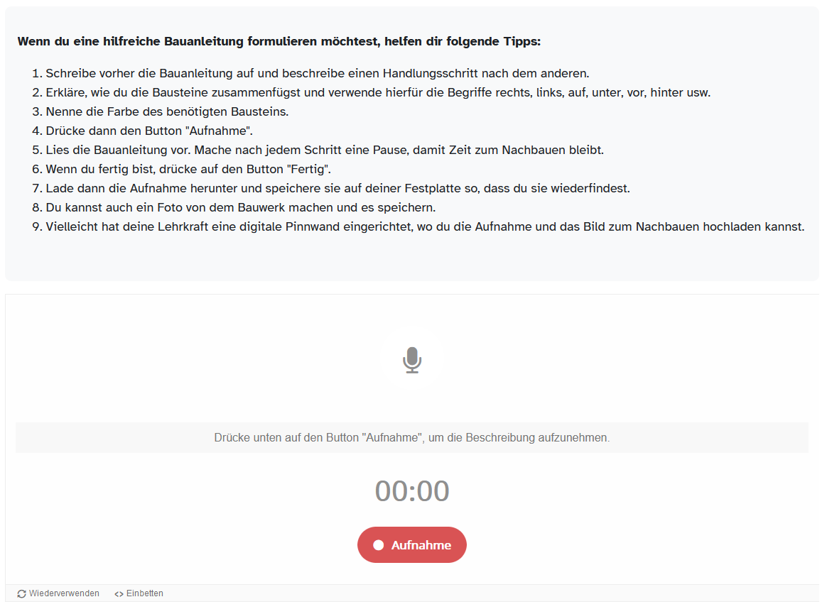 Vorstellung der Übung „Bauanleitungen aufsprechen“: