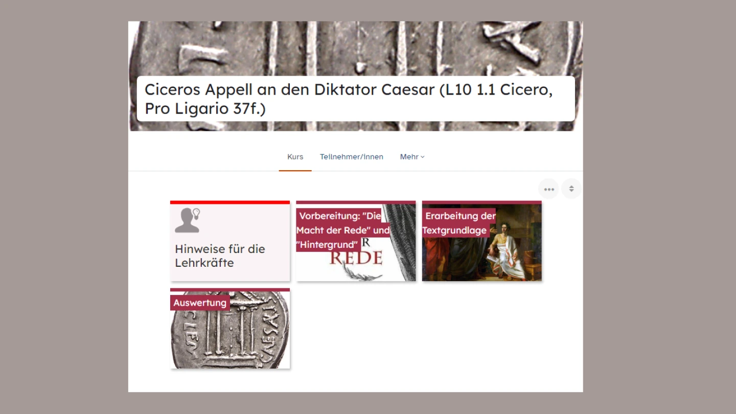 Durch die Beschäftigung mit dem Text und mit den Arbeitsaufträgen erkennen die Jugendlichen, mit welchen rhetorischen Finessen Cicero den Diktator Caesar (erfolgreich!) dazu bewogen hat, dem Caesar-Gegner Q. Ligārius die Rückkehr aus der Provinz Africa nach Rom zu gestatten. In dem zu erarbeitenden Textausschnitt liefert der Redner keinerlei Argumente, die in der Sache oder der Person des Ligarius begründet lägen, sondern appelliert in stilistisch höchst ausgefeilten Formulierungen an Caesars Güte (bonitas) und Mitleid (misericordia).
