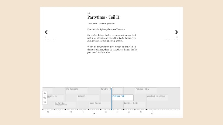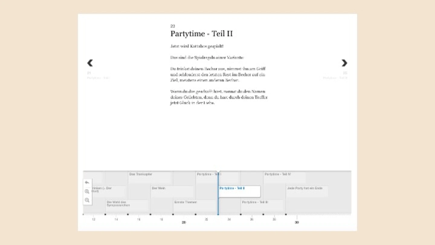 Die Schülerinnen und Schüler informieren sich mithilfe eines Zeitstrahls über den typischen Ablauf eines Symposions. Hier gehen die Lernenden chronologisch vor und erkennen durch einen Klick auf die Begriffe den Ablauf des Symposions.