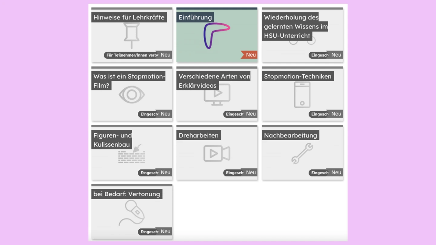 Es folgen unterschiedliche Aufnahmeformen von Erklärvideos und Stopmotion-Techniken. Im Anschluss daran sollen die Schülerinnen und Schüler selbst aktiv werden und ihre ersten kleinen Stopmotion-Filme erstellen. Hier ist ein großer zeitlicher Freiraum möglich, je nach vorhandener Unterrichtszeit und Interesse sowie Vorerfahrungen der Kinder. Es wird mindestens eine Unterrichtszeiteinheit benötigt.