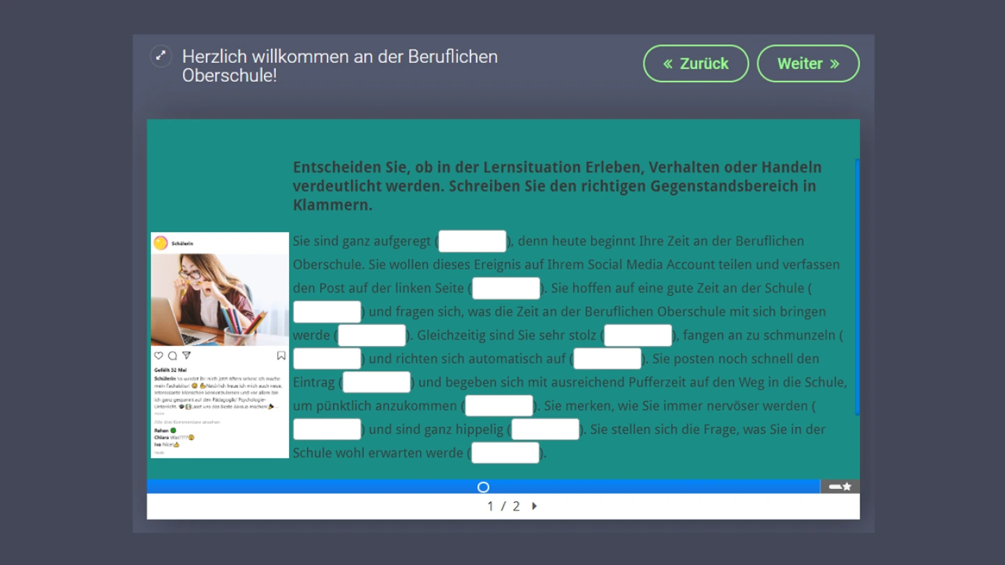In diesem Kurs haben die Schülerinnen und Schüler die Möglichkeit, nach der Erarbeitung der Persönlichkeitstheorie von Freud Übungsaufgaben zum Verständnis und zur Vertiefung durchzuführen. Es werden zentrale Inhalte zur Persönlichkeitsentwicklung aus psychoanalytischer Sicht wiederholt und geübt.