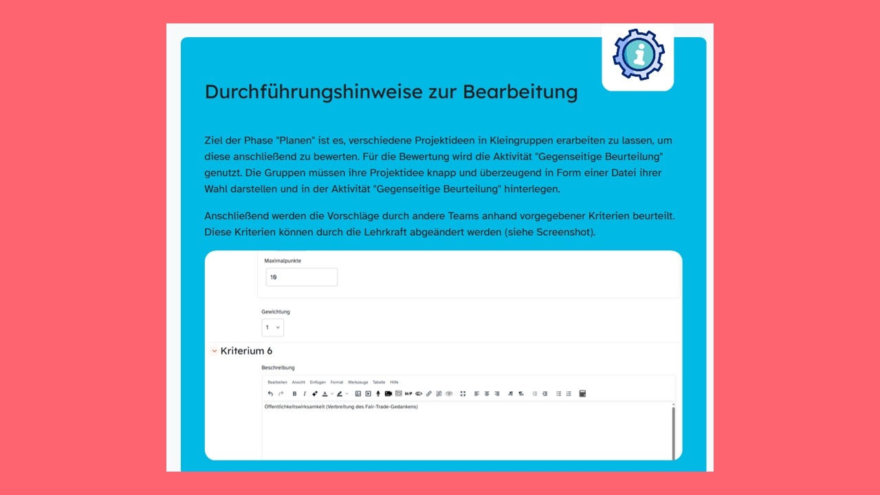 Gegenseitiges Feedback zu potentiellen Projektideen über die Aktivität „Gegenseitige Beurteilung”
