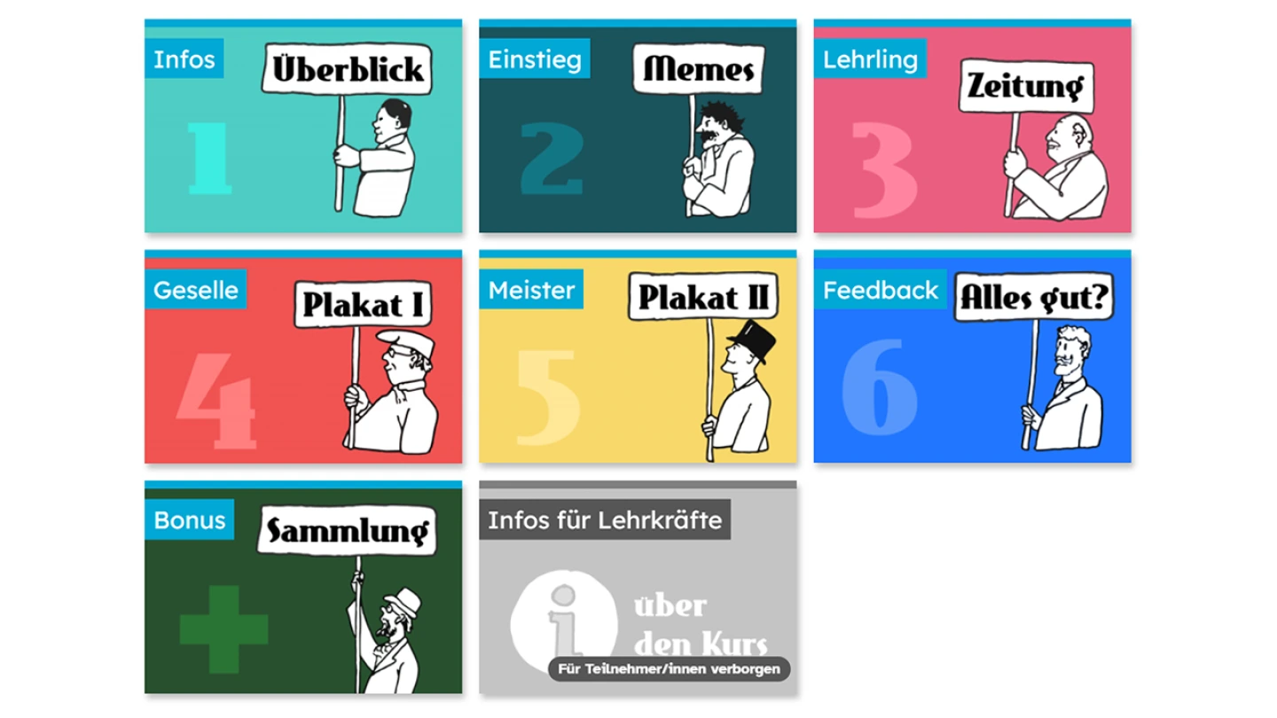 Hinweis: Einen schnellen Überblick über den Kurs erhalten Sie unten beim Material. Dort ist der kurze Film eingestellt, den die Lernenden zu Beginn der Lerneinheit im Kurs finden.