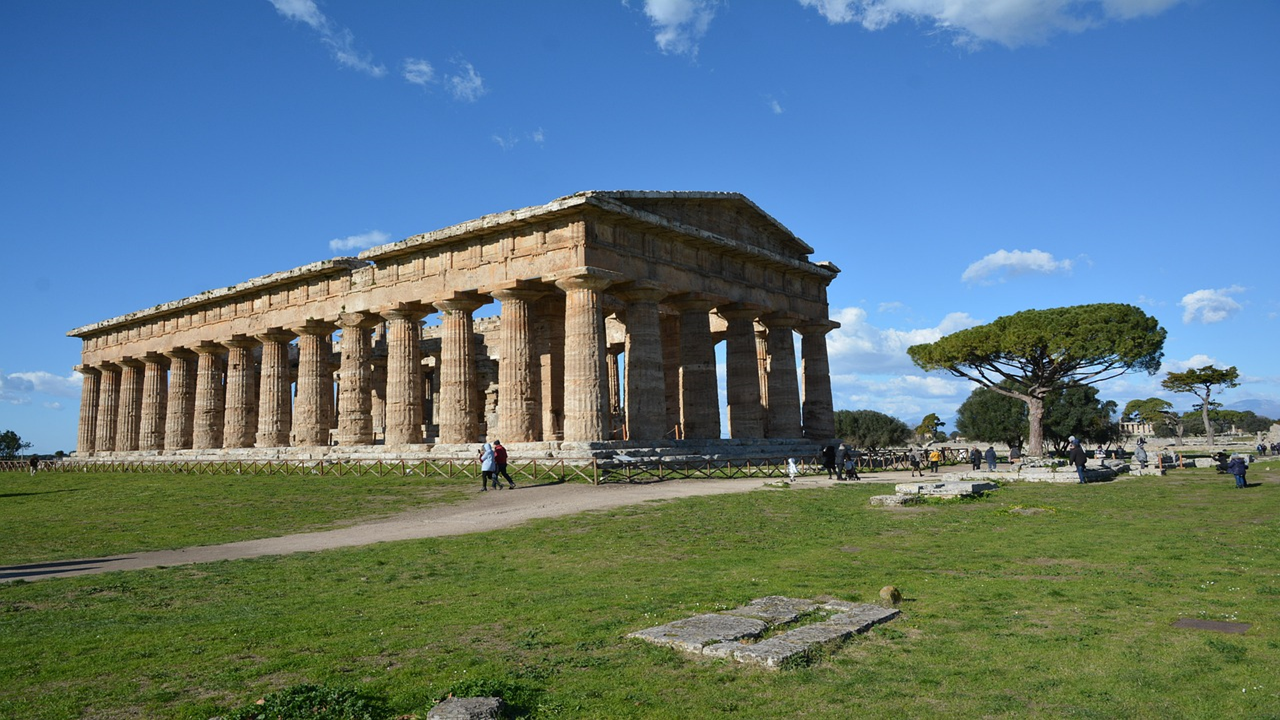 In dieser Lernaufgabe erkunden die Schülerinnen und Schüler die antike Tempelarchitektur. Sie lernen den Aufbau der Frontseite eines Tempels kennen, absolvieren dazu ein Quiz, erschließen sich selbstständig die drei Säulenordnungen und überprüfen ihren Lernfortschritt. Abschließend recherchieren sie die Rezeption antiker Tempelarchitektur im Zeitalter des Klassizismus.