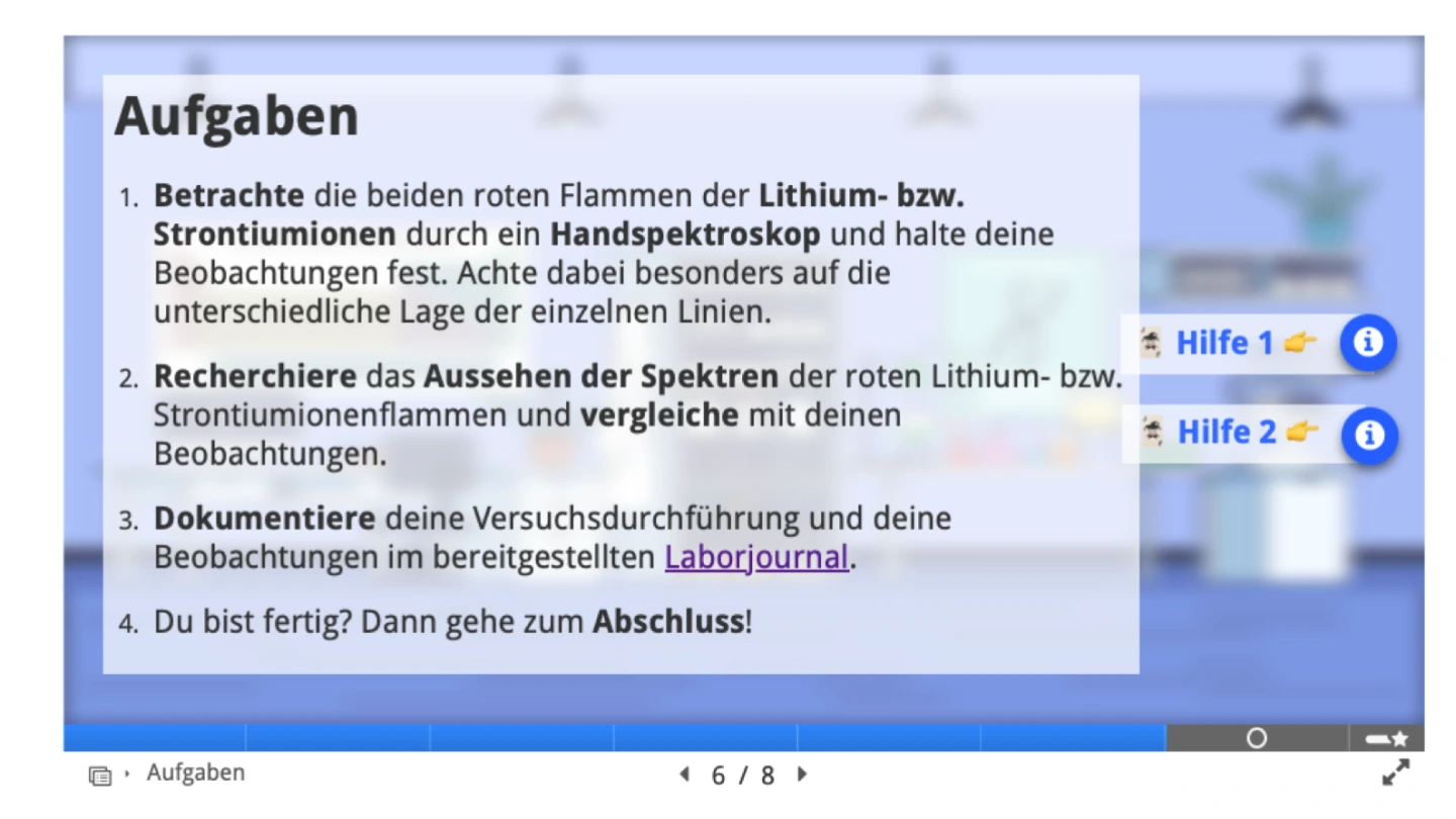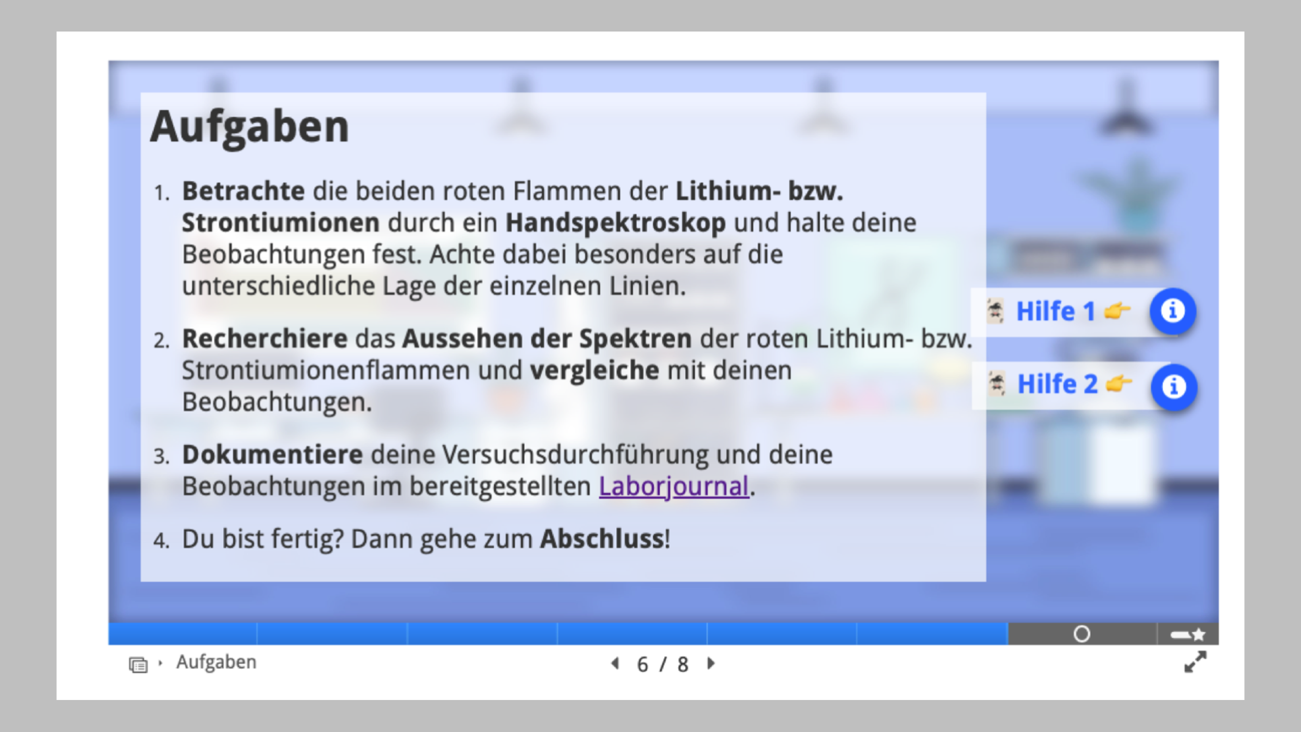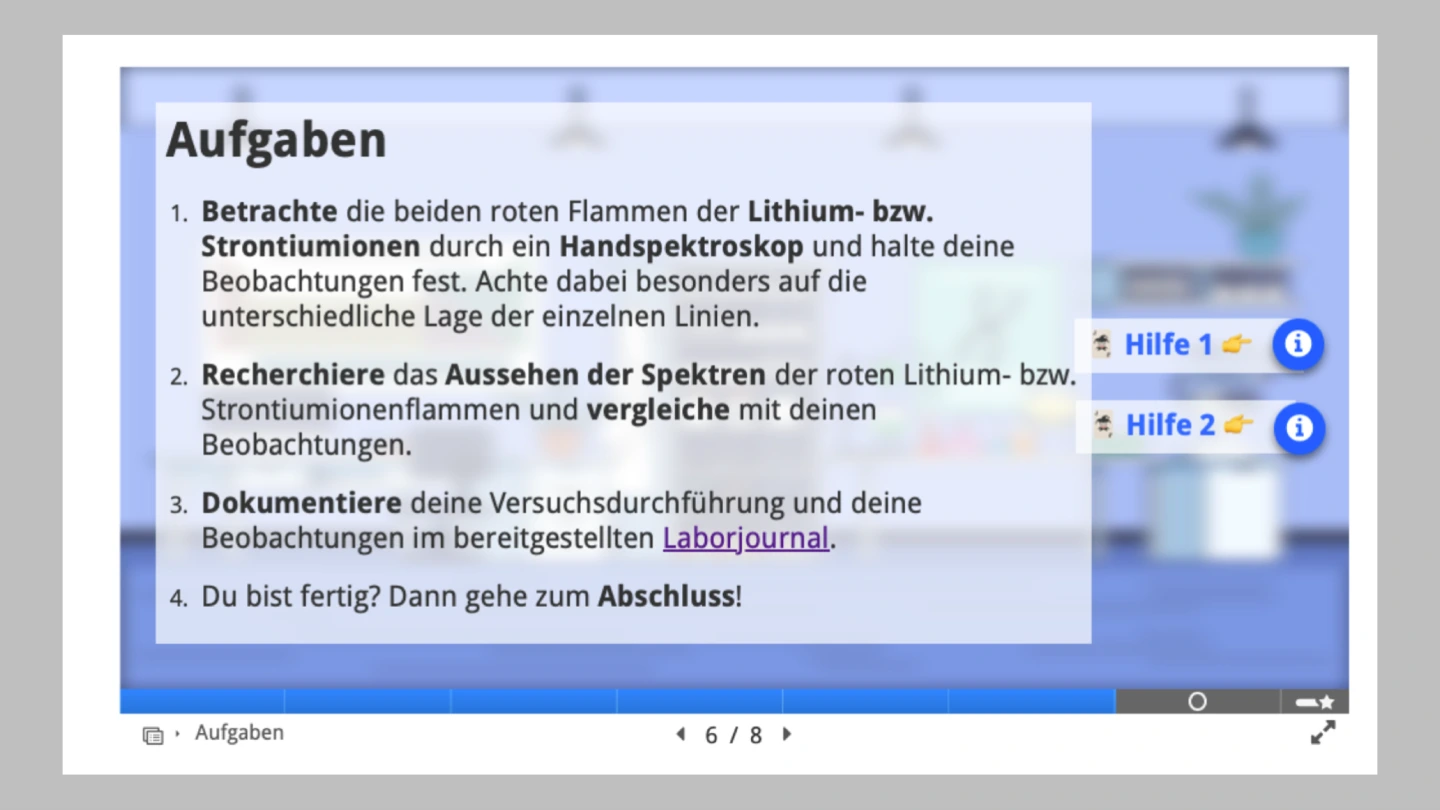 Die Lernenden wiederholen und festigen ihr erworbenes Wissen zu den Ionennachweisen anhand eines Mysteries. Sie suchen selbstständig ihren Weg durch eine Lernlandkarte, um ein unbekanntes Salz zu bestimmen. Hierbei werden Flammenfärbungen und Fällungsreaktionen wiederholt, gefestigt und im Experiment praktisch angewendet.