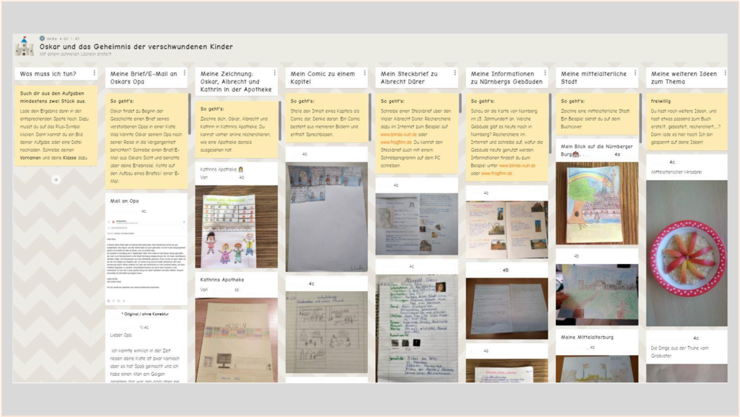 Die Aufgaben werden vorab auf der Pinnwand angelegt und erklärt. Die Aufgaben können sukzessive erweitert oder von Beginn an vollständig eingestellt werden. Sowohl Pflicht- als auch Wahlaufgaben sind möglich.
