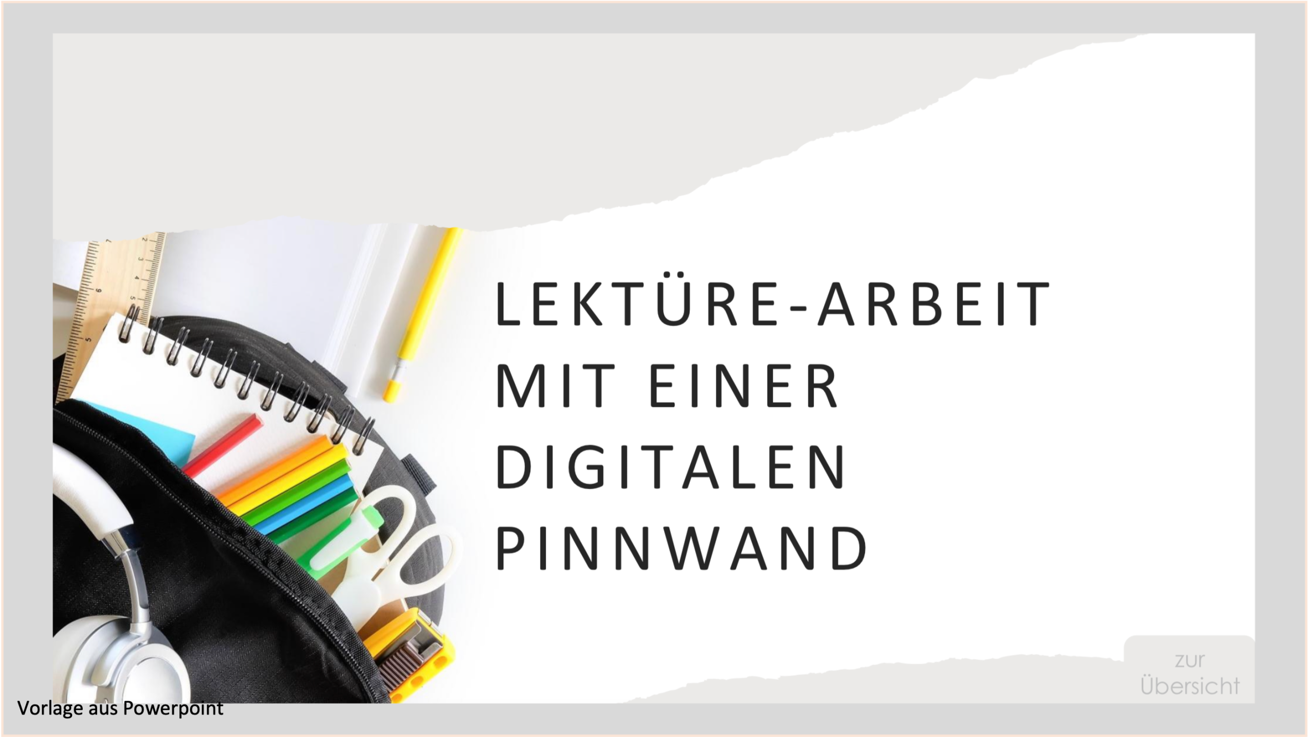 Das Lesen der Lektüre erfolgt parallel zur Bearbeitung der Aufgaben auf der Pinnwand.