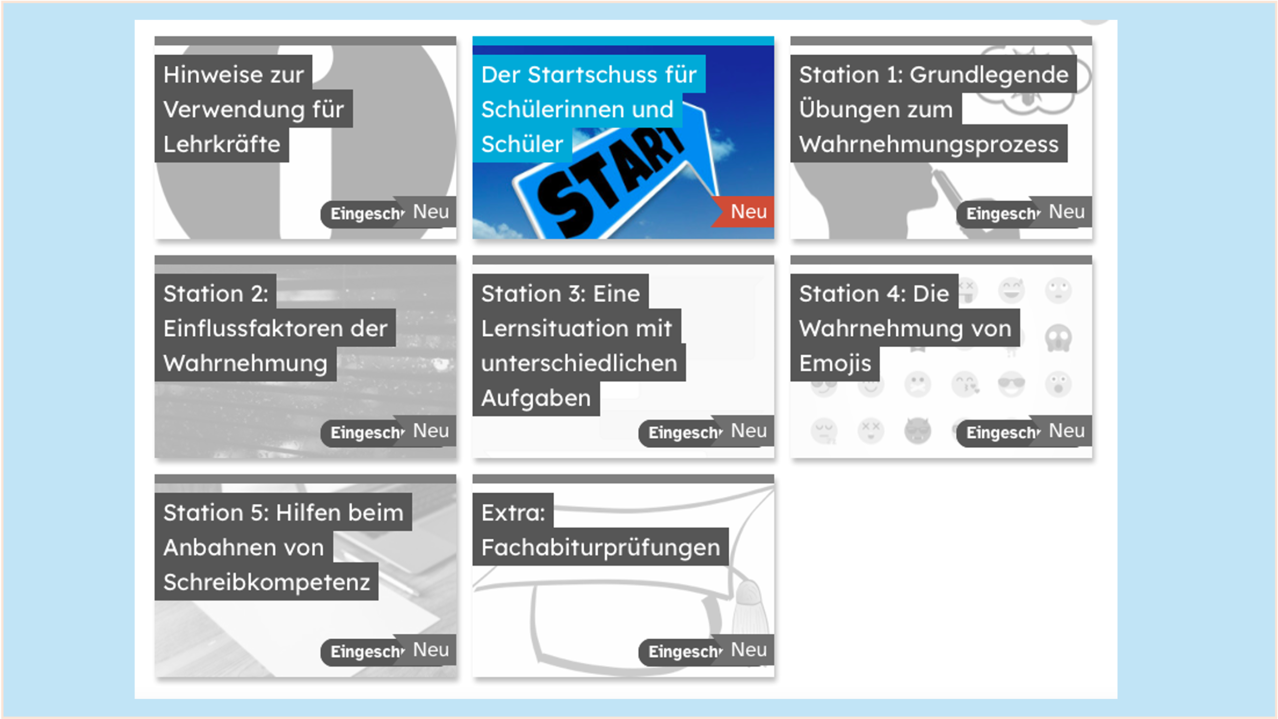 Zusätzlich befindet sich am Ende der 5. Station ein Worddokument mit Schreibhilfen für Lehrkräfte. Hier können die Lehrkräfte unterschiedliche Wortbausteine für die Beschreibung und Erläuterung des Wahrnehmungsprozesses herunterladen.