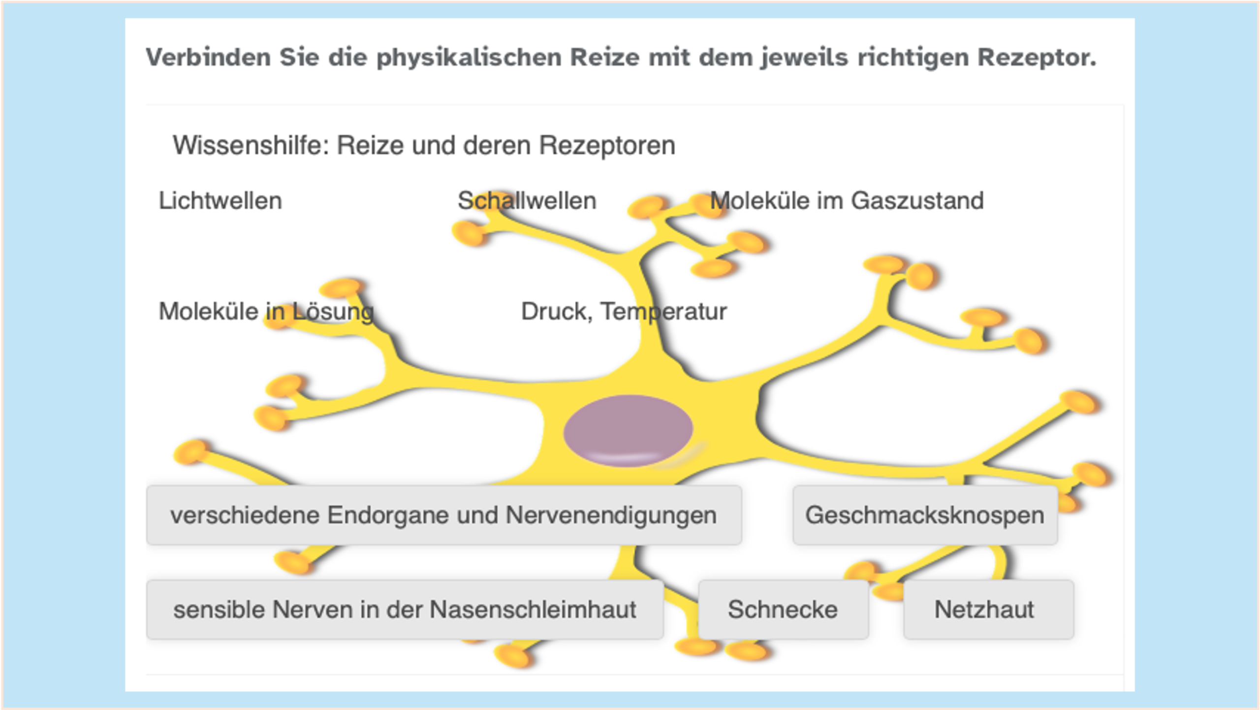 1. H5P-Drag and Drop - Zuordnungsaufgabe über Reize und Rezeptoren