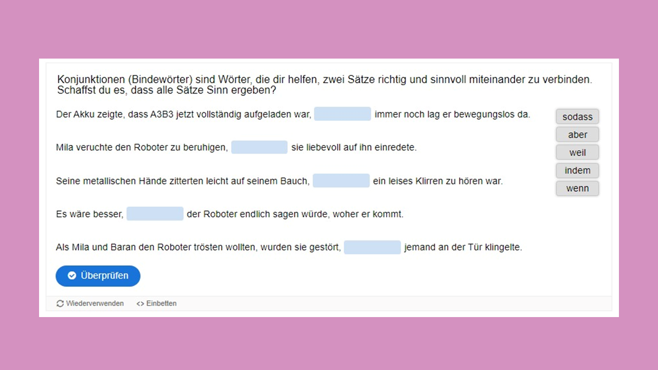In dieser Digitalen Lernaufgabe (DigLA) bearbeiten die Schülerinnen und Schüler eine Etappengeschichte und erstellen dabei ein Reisetagebuch. In fünf Etappen fliegen die Lernenden durch das Weltall mit dem Ziel Erde und erleben gefährliche Abenteuer.