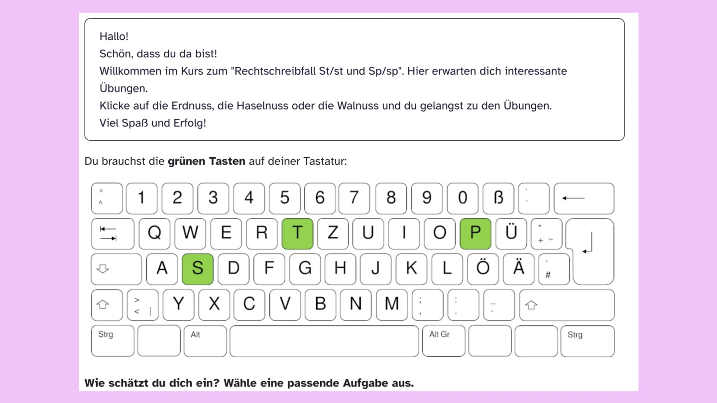 Zu Beginn wird die Abhörstrategie für Wörter mit Sp/sp und St/st erklärt. Hierbei wird der Fokus auf die korrekte Aussprache und Schreibweise gelegt.
