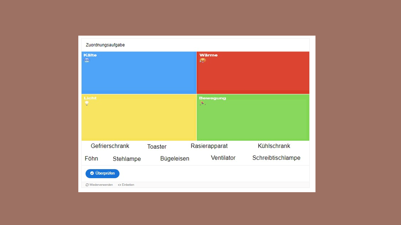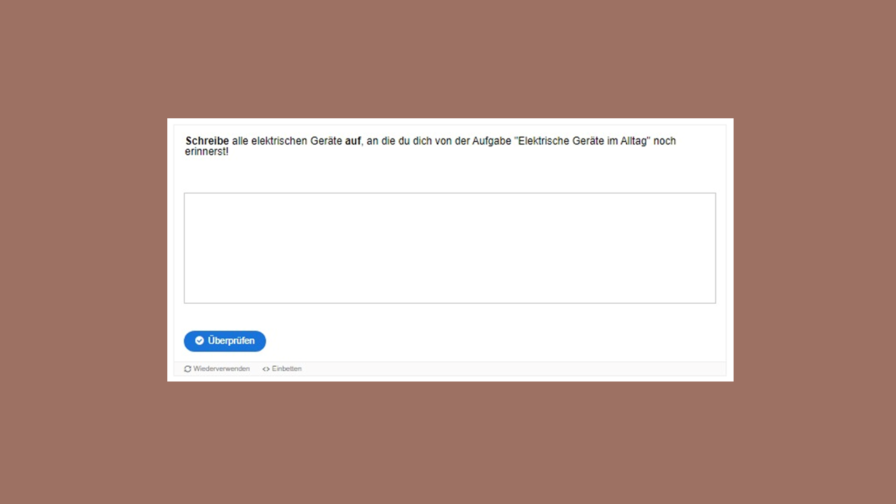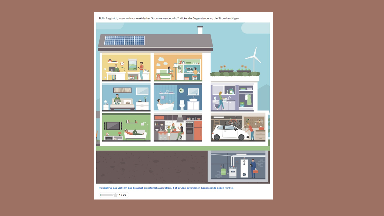 Lerninhalte: H5P-Übung und Tagebucheintrag zur Identifikation und Nutzung elektrischer Geräte