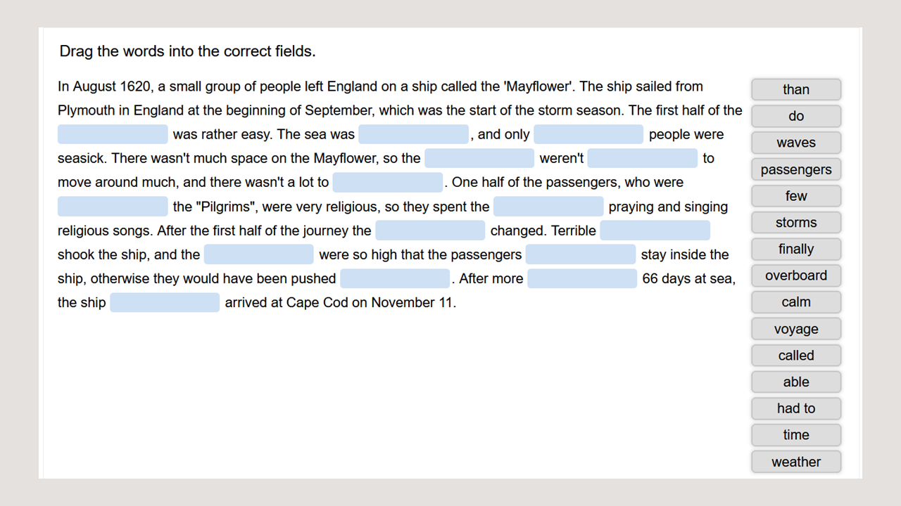In Kachel 5 („The Living Room“) ist ein interaktives Spiel des Plimoth Plantation Museum verlinkt, das ebenfalls als „Mystery“ konzipiert ist. Es thematisiert die Geschichte von „Thanksgiving“ und nimmt damit Aspekte auf, denen die Lernenden in den vorherigen Räumen begegnet sind. Die Inhalte des Spiels werden durch ein „Final Quiz“ mit Multiple-Choice-Aufgaben und einem „Cloze Test“ abgeprüft.
