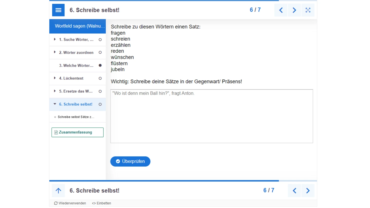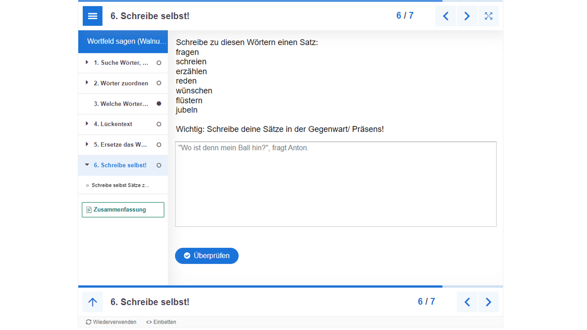 In dieser Digitalen Lernaufgabe (DigLA) lernen die Schülerinnen und Schüler die Rechtschreibstrategie und das richtige Schreiben von Wörtern mit St/st und Sp/sp. Durch interaktive Übungen werden die Rechtschreibfähigkeiten weiter vertieft und mit gezielten Rückmeldungen verbessert.