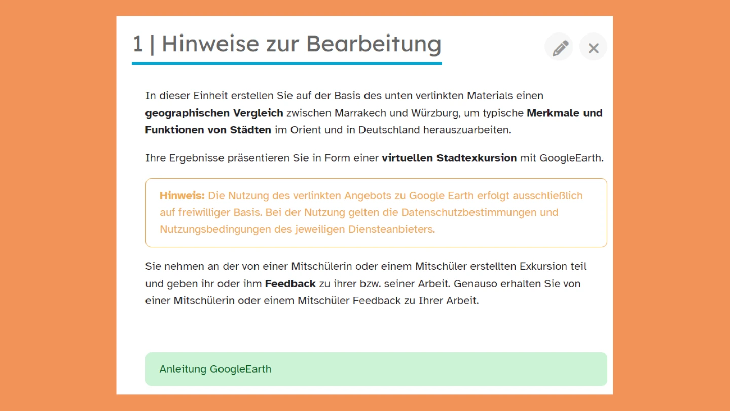 Der Vergleich der Altstädte von Würzburg und Marrakech innerhalb des Lernbereichs 10.5 fördert globales Lernen und interkulturelles Verständnis durch den Kontrast europäischer und nordafrikanischer Stadtentwicklung. Das Thema vertieft Kenntnisse in Stadtgeografie, beleuchtet den Schutz von UNESCO-Weltkulturerbestätten und ermöglicht die Analyse von Tourismus und nachhaltiger Stadtentwicklung. Es schult die geografische Methodenkompetenz der Schülerinnen und Schüler in der Bewertung räumlicher Strukturen und Prozesse ebenso wie die digitale Methodenkompetenz im Umgang mit modernen Präsentationsformaten (virtuelle Exkursion). Fächerübergreifende Anknüpfungspunkte zu Geschichte, Kunst und Religion bereichern den Unterricht. Der in der Aufgabe geforderte Peer-Review fördert die Feedback-Kultur innerhalb der Lerngruppe.